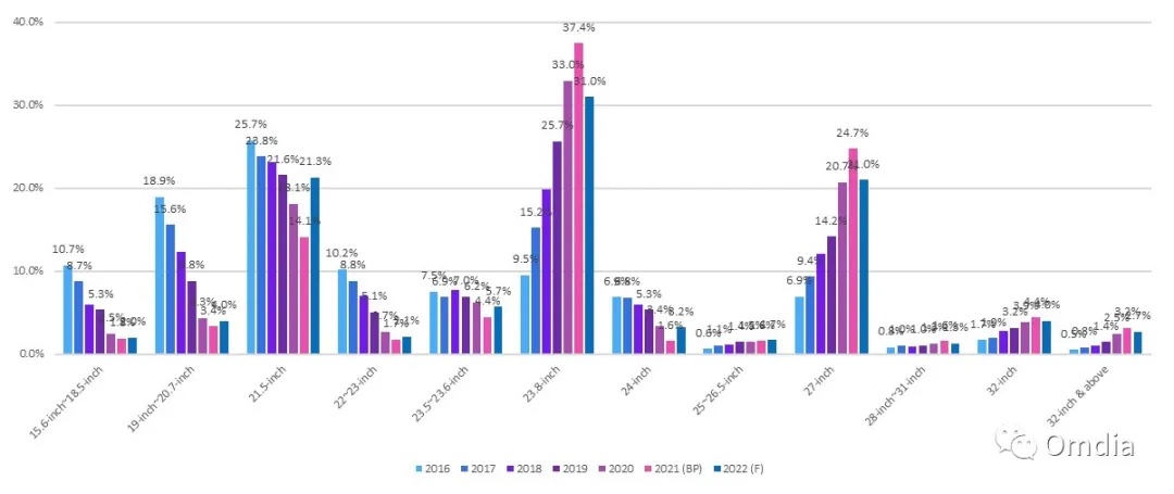 图2:预期各尺度桌上型显示器在2022年的改变