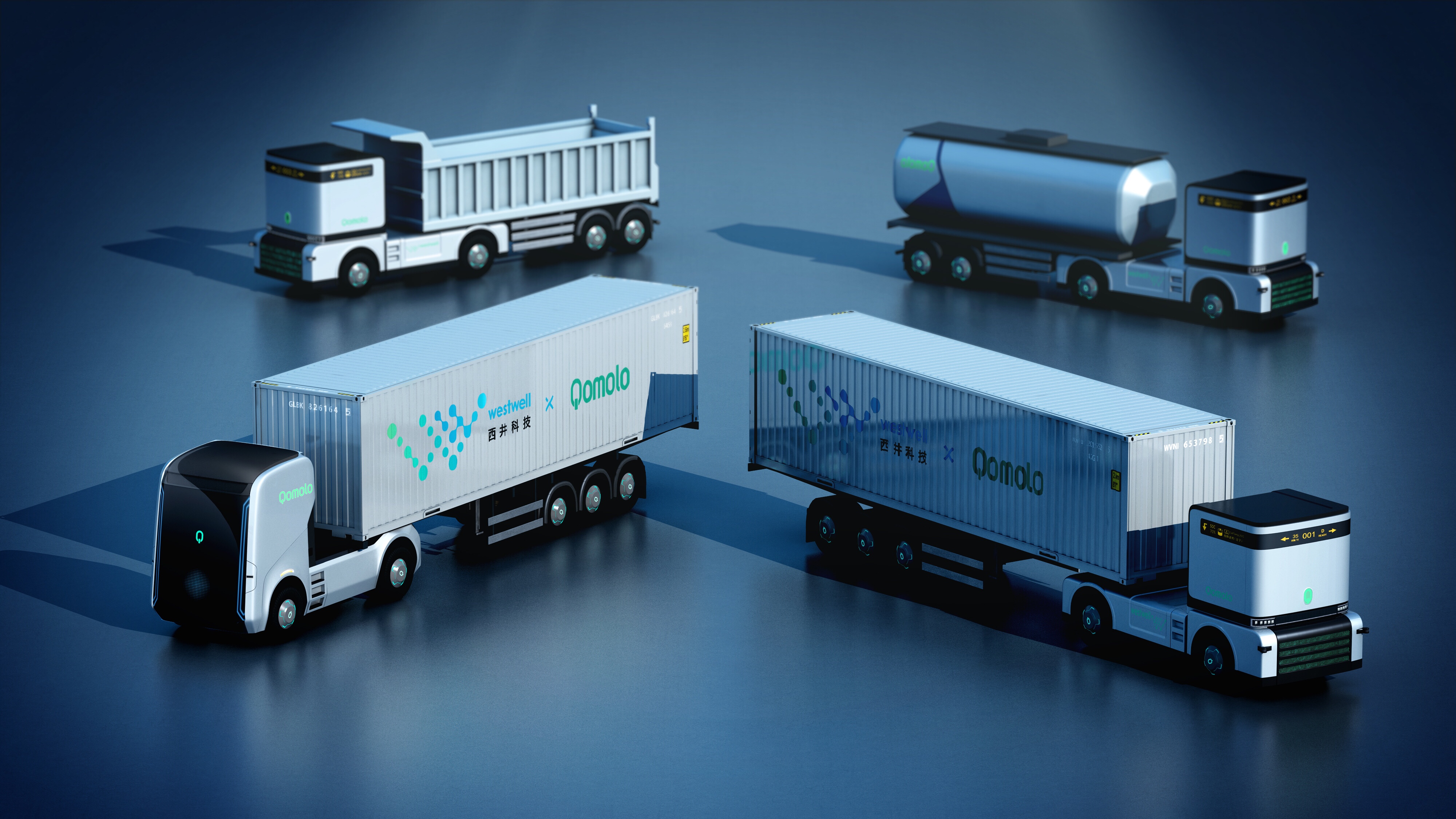 2018年9月13日,人工智能公司westwell西井科技推出全新主动驾驶品牌——Qomolo逐路,并发布全球首款实在含义的全时无人驾驶电动重卡 Q-Truck。该车选用开创性的无驾驶室整车规划,可运用于港口、物流园区,矿版,高速等多场景。
