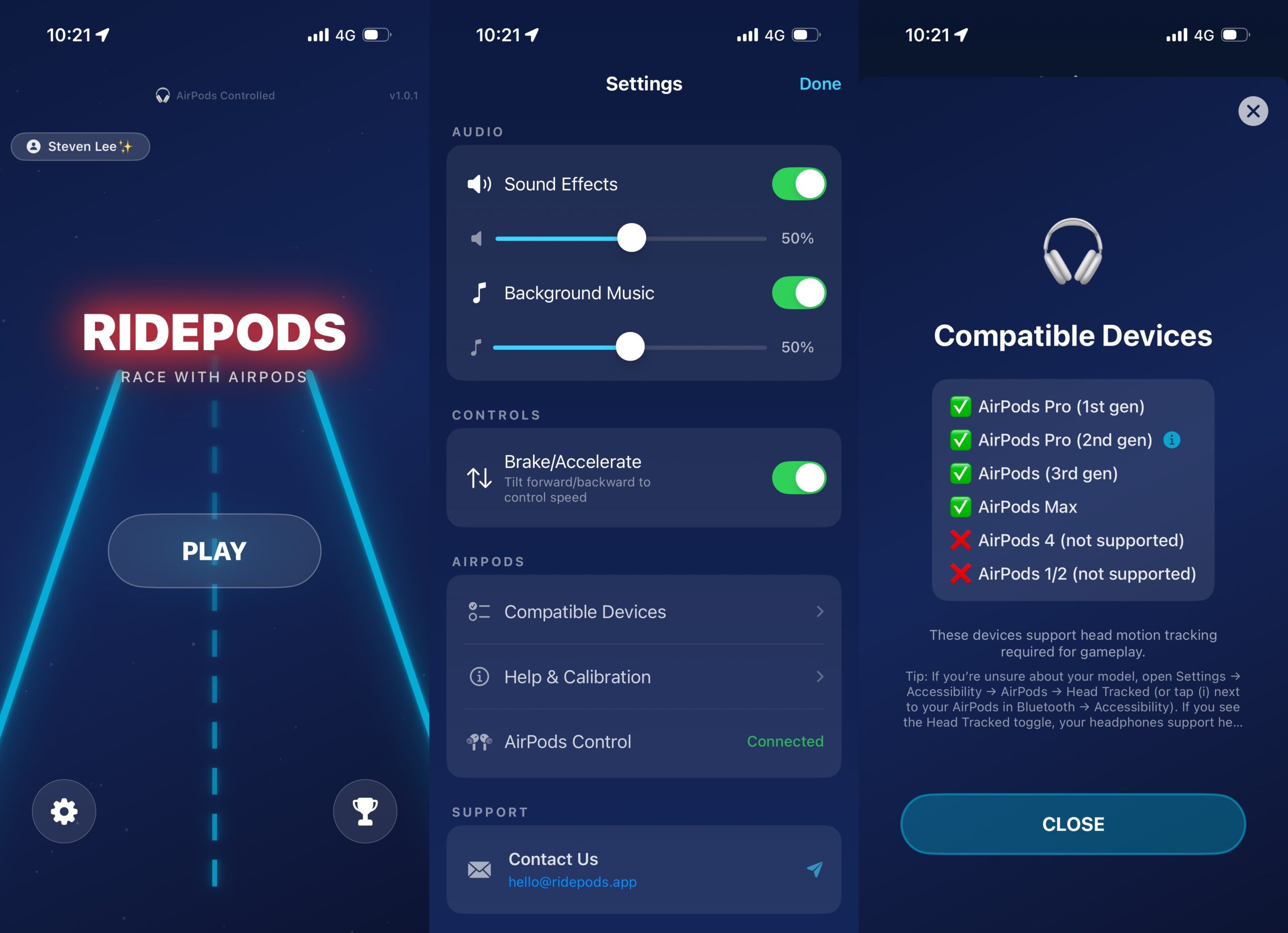 《RidePods – Race with Head》肯定不会成为一款我常常玩的游戏,但我从中看到了将耳机体感操控应用于手游的潜力。它完全免费,并且在国区 App Store 也能无障碍下载到,十分好。有空的话,无妨一试。
